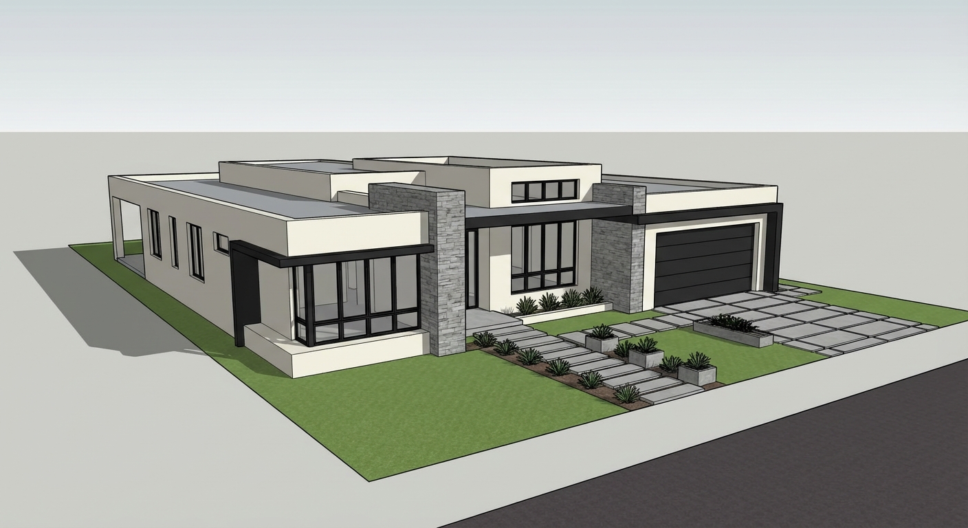 Contemporary residence with clean lines, premium finishes and integrated landscaping